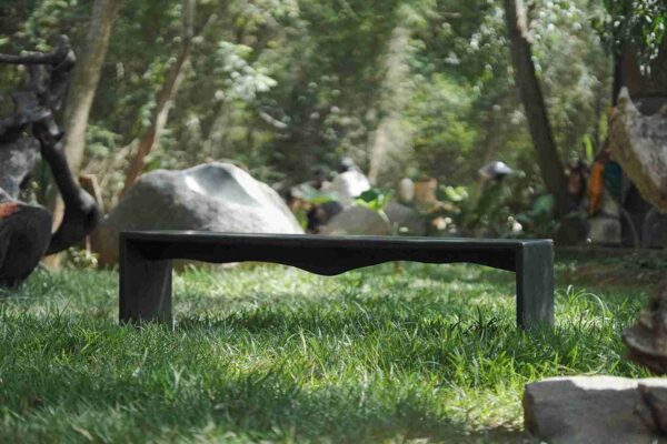The Black Bench is a profound study in the marriage of ancient preservation techniques and avant-garde furniture design. Carved from premium Teak wood, this piece serves as a primary example of how innovative joinery can transform a traditional material into a high-concept sculptural object. The bench’s profile is defined by a clean, balanced top supported by a base that emphasizes symmetry while maintaining a fluid, organic silhouette.