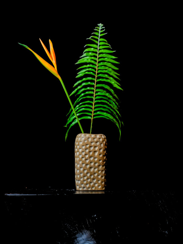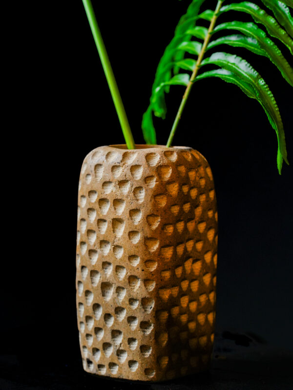Part of our exclusive Limited Edition (VAS-GLOR) series, this vase is built for the discerning collector. Its substantial weight and dense mineral composition provide a sturdy foundation for structural botanicals like ferns or vibrant tropical stems, though it carries enough sculptural gravity to be displayed entirely on its own. Because each indentation is made by hand, no two vases in this series will ever be identical, offering you a unique artifact of both natural and human history. It is a timeless addition to a curated home, blending the primal energy of the earth with refined, modern craftsmanship.