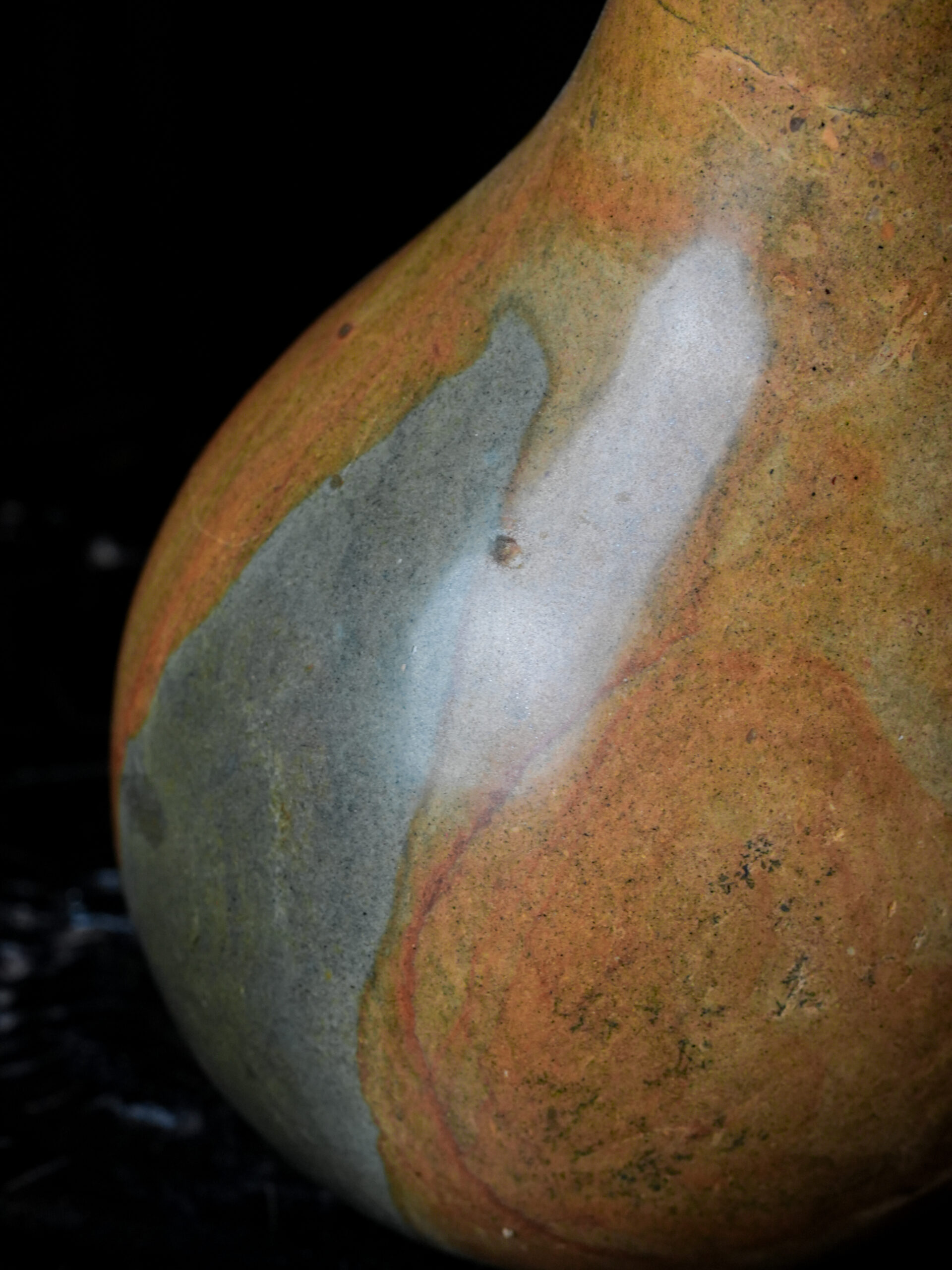Design: Hand-carved asymmetrical sloped teardrop form